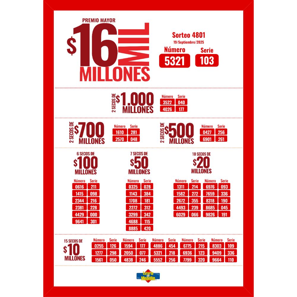 LOTERIA DE MEDELLIN viernes 19 de septiembre de 2025